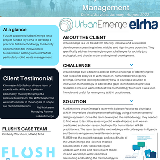 Lastly, FLUSH prides itself on asking difficult questions and finding new ways to do work based on evidence from other industries. We try to proactively inform the public and professionals about new ways to think about water, sanitation, an climate, and investigate how to improve efforts that are failing the sector.
